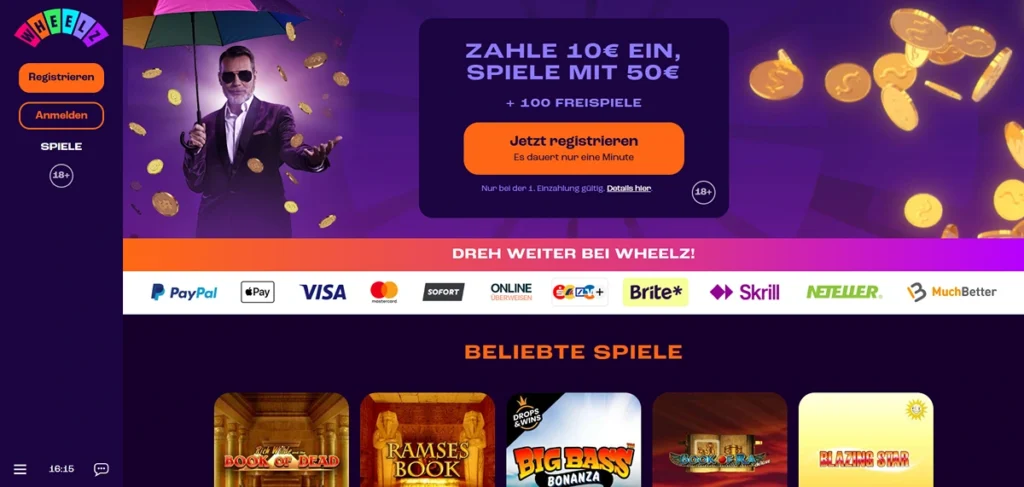 | Wheelz | 100% bis zu 300€ | Sehr schnelle Zahlungen | 4.8/5 | [Zum Casino] |